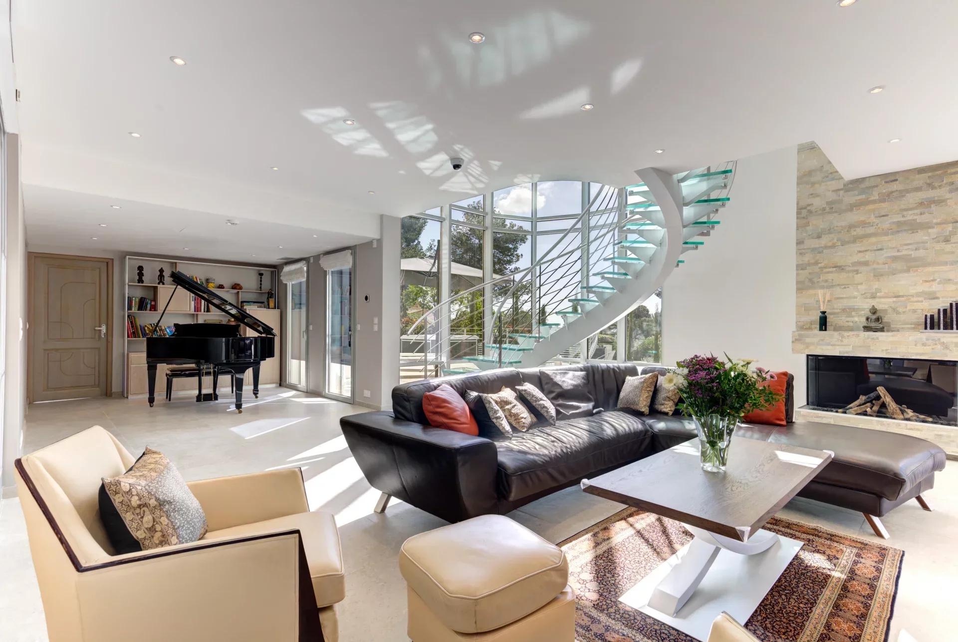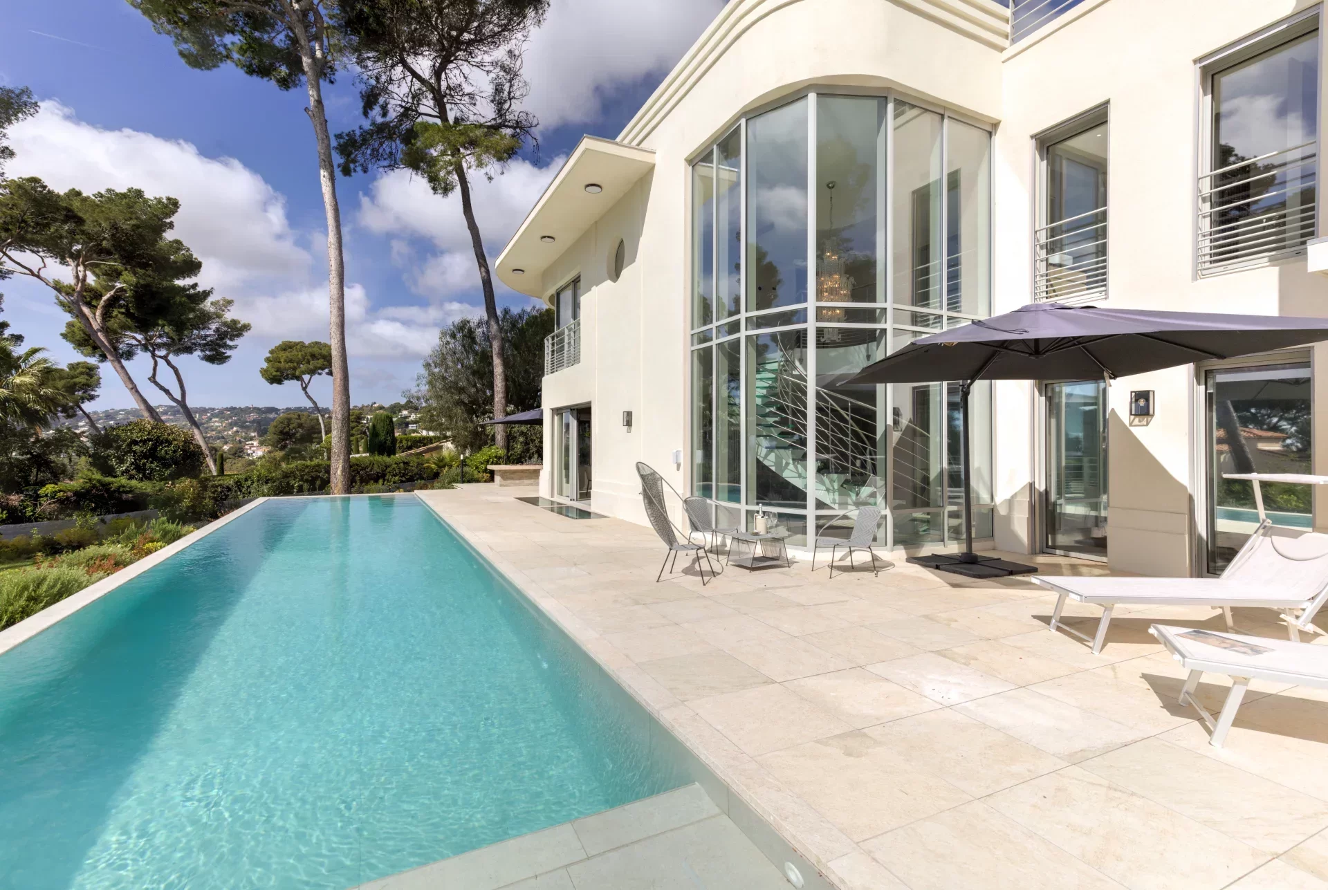 A 5-bedroom contemporary villa on the market in Antibes. Area: 343m² 10 room(s) 5 bedroom(s) Land: 1543m² Come and discover this superb and spacious villa that is 343m² in size, located in a peaceful and highly sought-after area of Antibes. Just a short walk from the beaches and the local shops and bakeries. Spread over 3 levels, the villa includes 5 bedrooms, each with a shower room or bathroom. The master bedroom has a bathtub, an Italian shower, and an integrated hammam. The spacious double living room is located on the main floor and gives access to a terrace overlooking a beautiful garden of more than 1500m ² that is south-west facing complete with a heated salt pool. You can enjoy the terrace in summer and winter thanks to its outdoor heating system. The property also has a large covered parking area for up to 10 vehicles.
