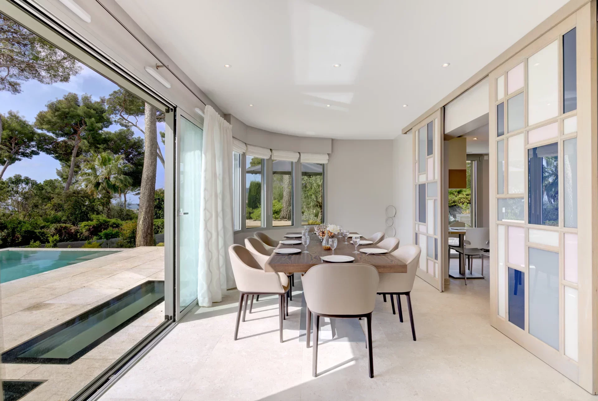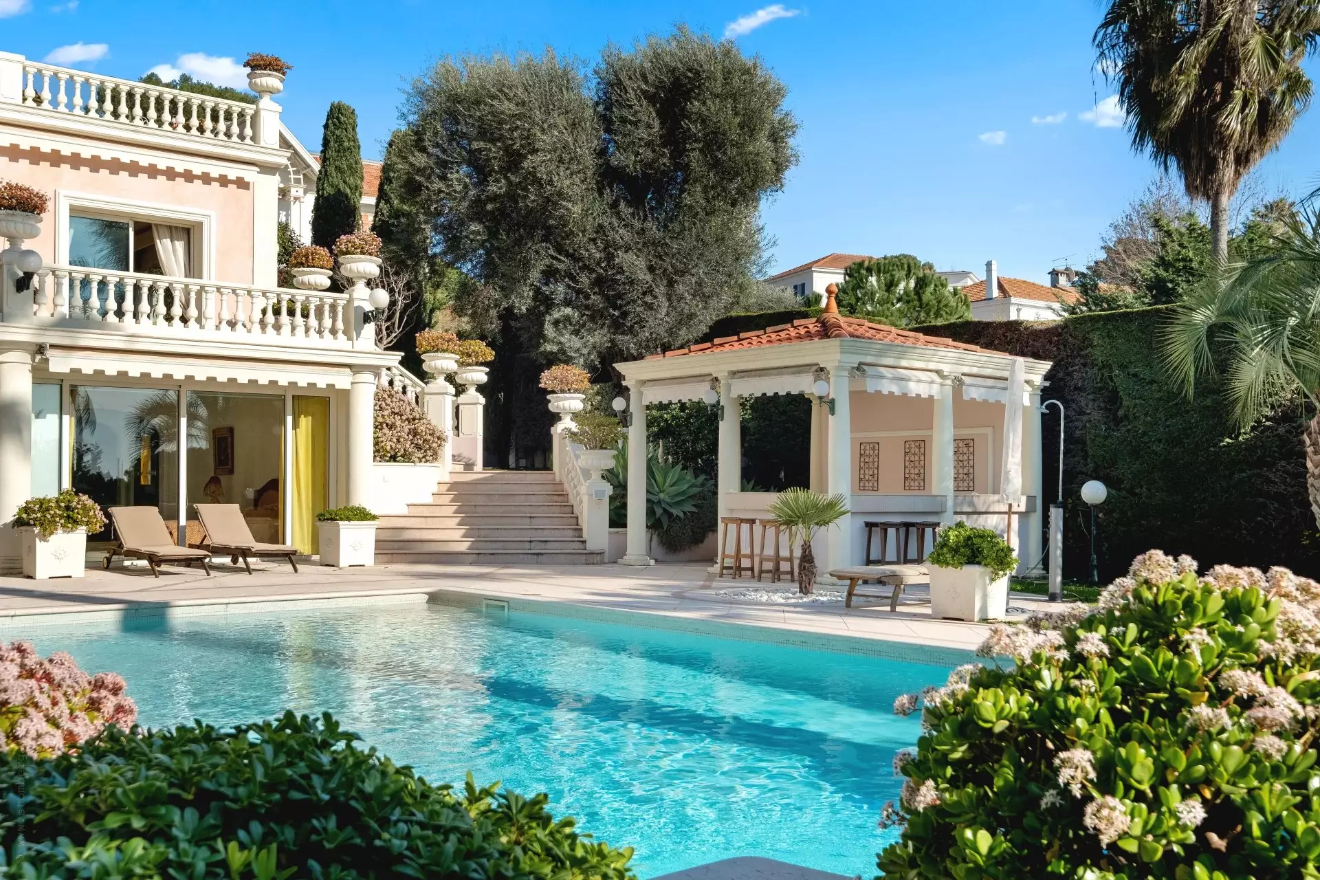 Located in a quiet, privileged area of Antibes, this magnificent Art Deco property is nestled in the heart of a lush garden of over 1800m2, complete with a heated swimming pool and jacuzzi. Recently renovated with top-of-the-range materials, this villa offers a harmonious and refined design. The villa of 466 m2 comprises seven bright bedrooms, each with en suite bathrooms, three of which have spacious walk-in closets. The spacious living room, dining room, and fully-equipped kitchen. What's more, the beautiful terraces offer views of the sea and the surrounding greenery. In the basement, you'll find a wellness area featuring a sauna, steam room, gym, and games room, allowing you to relax and enjoy yourself in complete tranquillity. Plus a wine cellar, laundry room, and garage of around 100m² complete this exceptional property.